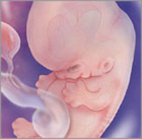 "Your new resident is nearly an inch long — about the size of a grape — and weighs just a fraction of an ounce. She's starting to look more and more human. Her essential body parts are accounted for, though they'll go through plenty of fine-tuning in the coming months. Other changes abound: Your baby's heart finishes dividing into four chambers, and the valves start to form — as do her tiny teeth. The embryonic "tail" is completely gone. Your baby's organs, muscles, and nerves are kicking into gear. The external sex organs are there but won't be distinguishable as male or female for another few weeks. Her eyes are fully formed, but her eyelids are fused shut and won't open until 27 weeks. She has tiny earlobes, and her mouth, nose, and nostrils are more distinct. The placenta is developed enough now to take over most of the critical job of producing hormones. Now that your baby's basic physiology is in place, she's poised for rapid weight gain."